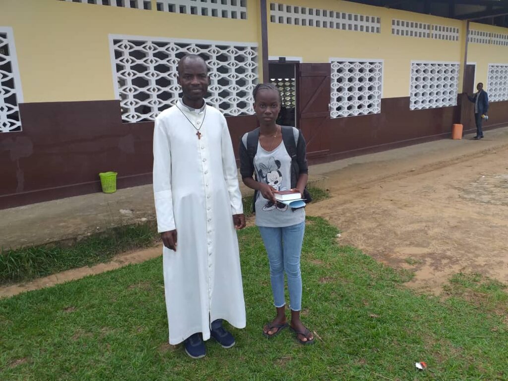 Otra vez, una alumna nuestra, Balossa, a la que veis aquí en la foto con nuestro amigo Jean Baptiste Kintombo, ha sido la mejor alumna de los exámenes, con un 16/20